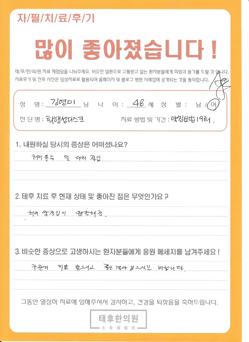 퇴행성 디스크-김O미님