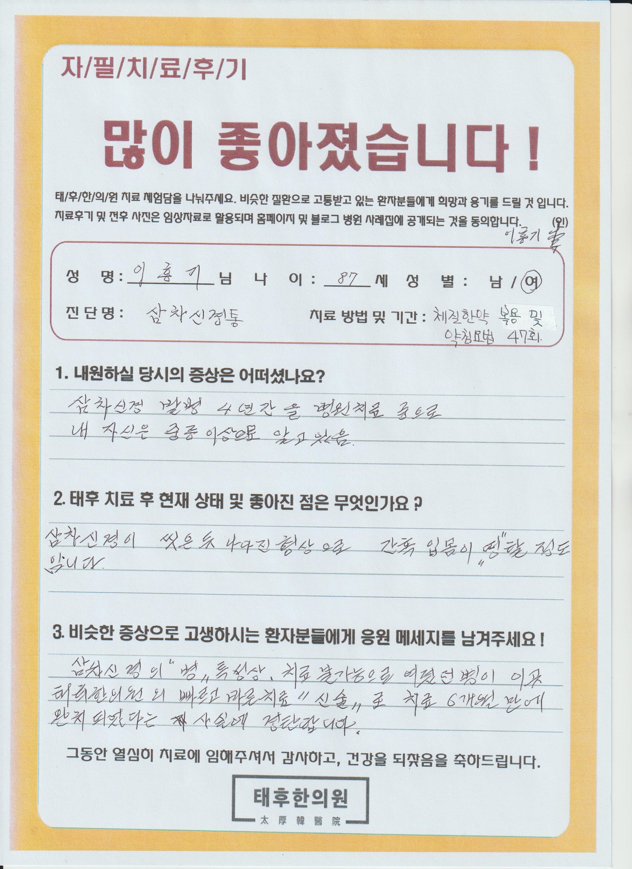 목디스크(추간판탈출증)- 박0국님 치료후기
