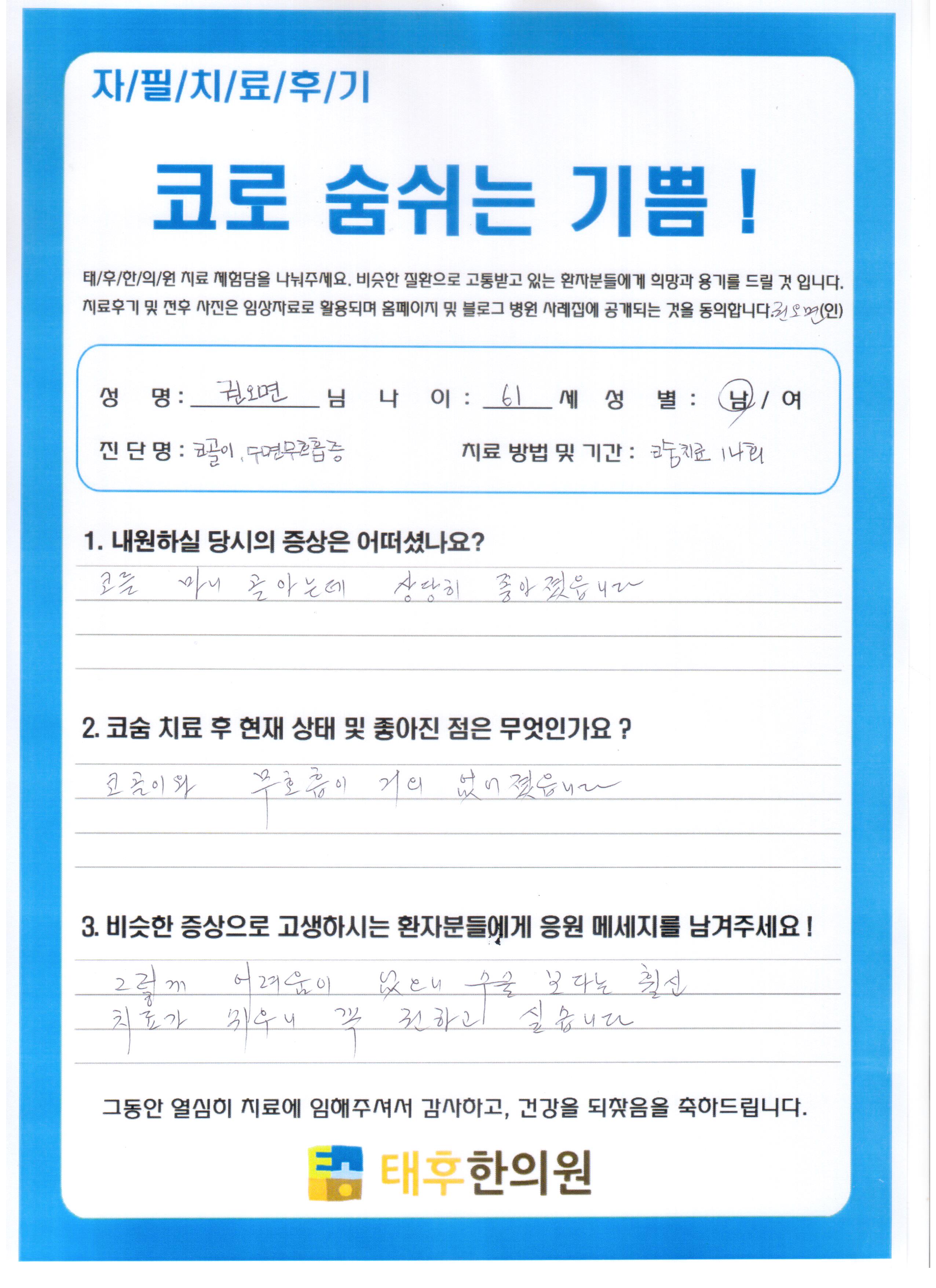 코골이 수면무호흡 권OO님
