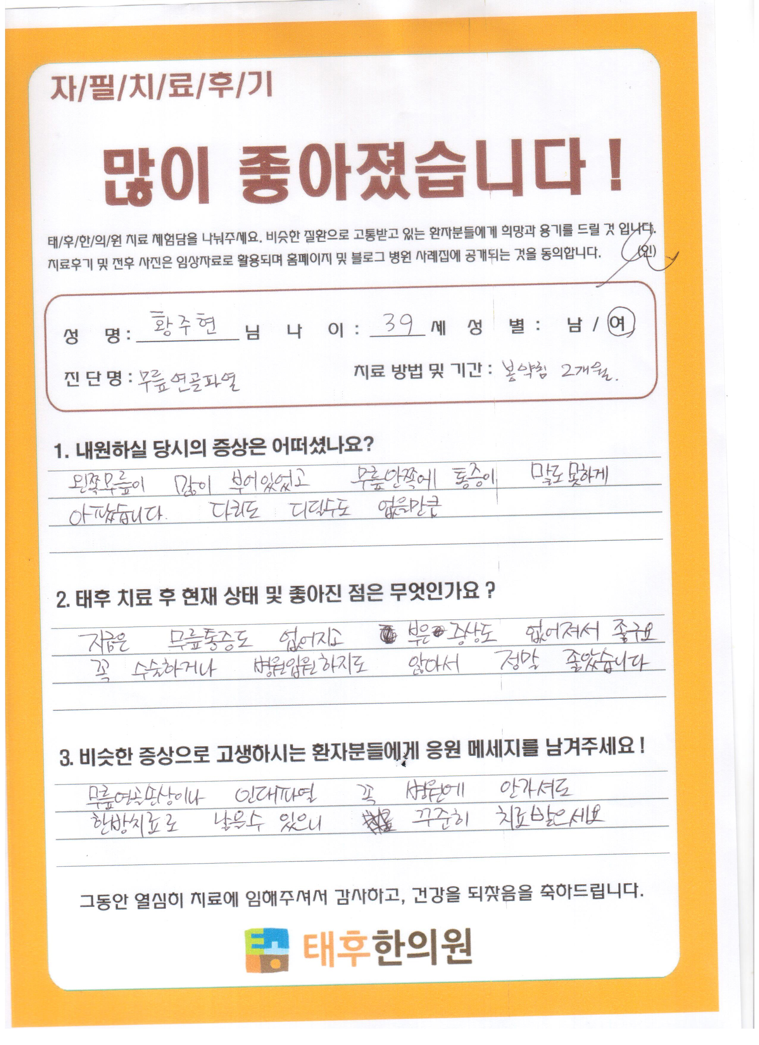 무릎연골손상 황OO님